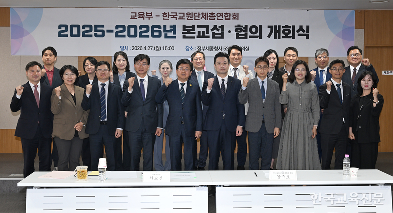 한국교총과 교육부 간 본교섭이 본격 시작됐다. 양측은 27일 교육부에서 ‘2025~2026년 본교섭·협의 개회식’을 가졌다. 개회식에는 강주호 교총 회장과 최교진 교육부 장관을 포함해 양측에서 각 10명의 위원이 참석했다.