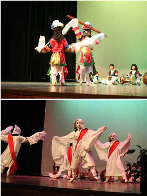 무대가 올라가고 풍물 장단이 신명나게 강당에 울려 퍼진다. 느린 장단에서 빠른 장단으로 가락이 옮겨가면서 구경꾼들의 어깨를 절로 들썩이게 한다.
