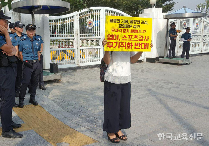 교육부 정규직 전환심의위원회 최종 결과 발표가 다음주초로 다가온 가운데 교사와 예비교사들의 정규직 반대 외침이 주말도 잊은채 이어지고 있다.