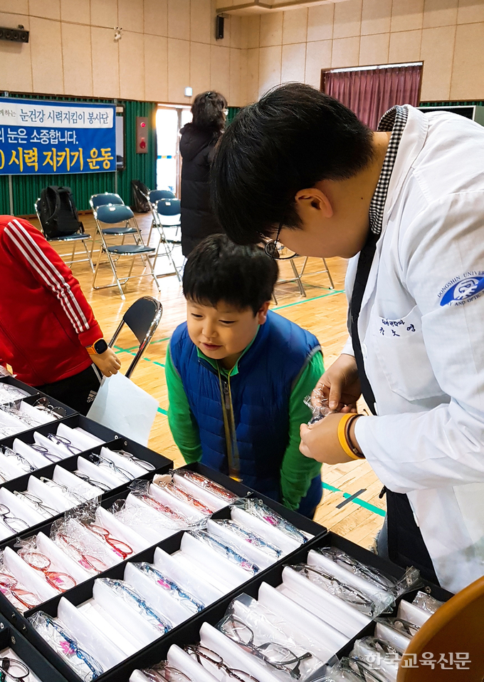 시력이 나빠 불편을 겪었던 학생들은 이날 정밀 검사를 통해 각자의 취향에 맞는 안경을 선물받고 즐거워했다. 특히 이날은 동신대 안경광학과 학생 15명도 봉사로 동참해 나눔의 의미를 더했다.