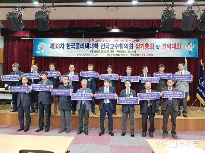 윤희중 총회장은 “한국폴리텍대학 교원들이 정당한 지위와 처우를 받을 때까지 의견을 개진하고 발로 뛰겠다”고 밝혔다. 이어 “정부는 조속히 학장을 임명해 학교현장의 혼란을 해소하고 한국폴리텍대학 이사장에게 임명권과 자율권을 보장해야 한다”고 촉구했다.