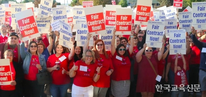 올 8월 말, 새 학기 시작을 앞두고 워싱턴주에서도 교사들이 파업했다. 워싱턴주의 케네윅(Kennewick)교육청 소속 교사들은 인근 교육청에 비해 낮은 수준의 임금을 책정하는 자신들의 교육청에 항의했다. 노동조합은 인근의 리치랜드(Richland)와 파스코(Pasco)교육청과 비교하여 케네윅교육청의 교사 급여가 낮기 때문에 다수의 교사들이 인근 교육청으로 이직하고 있다고 주장했다. 한국과 달리 미국은 각각의 교육청이 계약을 통해 교사를 고용하므로 교육청마다 지급하는 급여 수준이 다르다.
