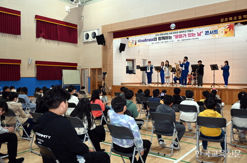 이번 공연은 지역의 유명 금관 앙상블 연주팀인 ‘VivoBrass’를 초청하여 평소 학생들이 접하기 힘들었던 트럼펫, 트럼본, 호른, 튜바 등 관악기별 특징 및 소리를 알아 가는 시간과 해설이 있는 공연으로 구성돼 학생들에게 문화·예술적 소양을 함양하는 기회를 선사했다.