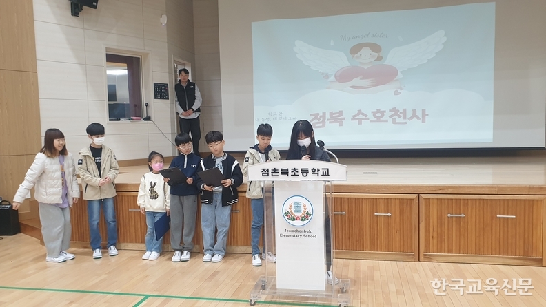 학생 회의 이후에는 전교학생회에서 준비한 수호천사 활동을 진행하였다. 언니, 오빠 그리고 동생을 만들고 싶어 하는 자치회의 바람에서 시작한 이 행사는 전교생이 모두 형제, 자매 맺기를 통하여 학교 안에서의 가족을 만들어 1년간 내 동생의 수호천사가 되어 주는 활동이다. 뽑기를 통하여 한명씩 짝을 지어 유치원~3학년 학생은 동생이 되고 4~6학년 학생들은 형님, 언니가 되어서 1년동안 수호천사가 될 것을 촛불에 맹세하였다.