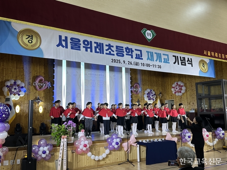 9월 26일, 체육관에서 열린 재개교 기념식에는 강동송파교육지원청과 강동구청, 지역 학교장 등 250여 명이 자리했다. 학생들의 공연과 기념 영상 상영, 교가 제창이 이어지면서 교정은 벅찬 감동으로 물들었다.