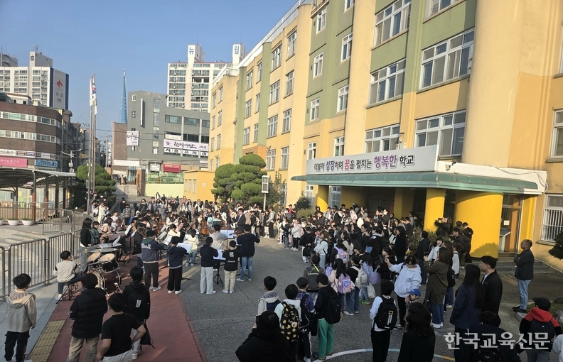 경기 시흥신일초(교장 박경옥)는 30일 오전, '가을의 멜로디'를 주제로 등굣길 음악회를 열어 학생들의 등굣길에 활기를 불어넣었다. 음악을 통해 서로 소통하고 협력하는 법을 배우고, 인성 함양과 예술적 감수성을 키우는 명문 교육 프로그램으로 자리매김한 시흥신일초 오케스트라는, 매년 정기연주회를 통해 꾸준한 성장을 거듭해온 실력을 바탕으로 이번 특별 공연을 마련하였다.