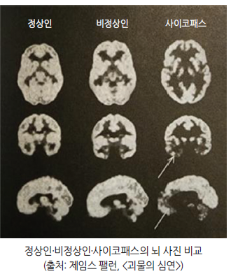 사이코패스의 뇌는 전두엽과 편도체의 비정상적인 활성화 패턴을 보인다. 이는 타인의 고통을 감정적으로 공감하지 못하고, 충동적 결정을 쉽게 내리는 원인이 된다.