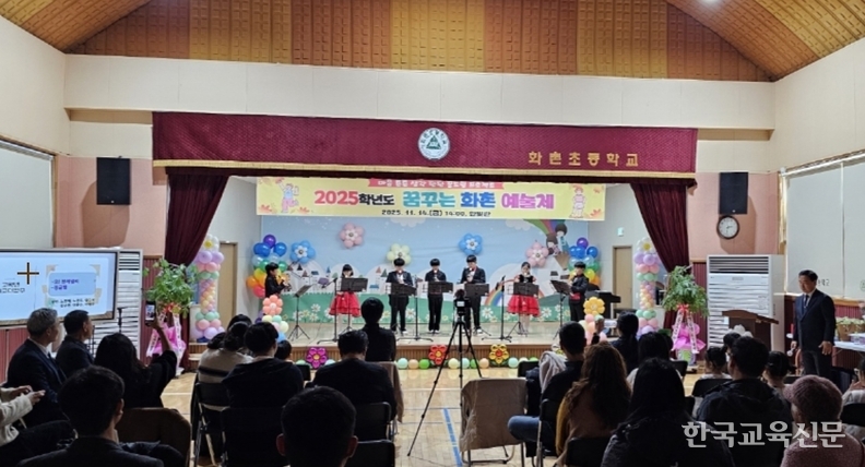 강원도 홍천군 화촌면의 작은 농촌학교인 화촌초(교장 김홍식)는 14일 전교생과 학부모가 함께한 가운데 ‘2025학년도 예술발표회’를 열었다.