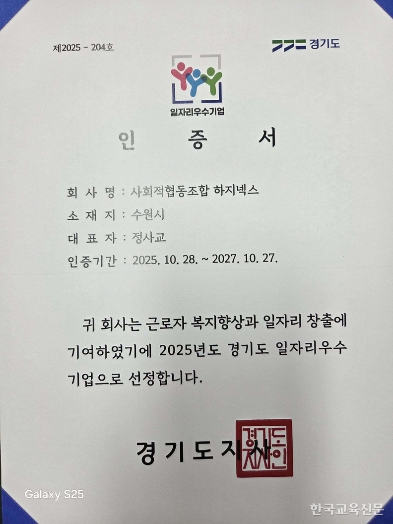 최근 하지넥스가 받은 경기도지사 인증은 단순한 표창 이상의 의미를 지닌다. 정 이사장은 “협동조합 설립 이후 임직원 모두가 함께 노력해 온 결과에 대한 보상”이라며, “취약계층에게 더 많은 양질의 일자리를 제공하라는 격려로 받아들이고 있다”고 말했다.
