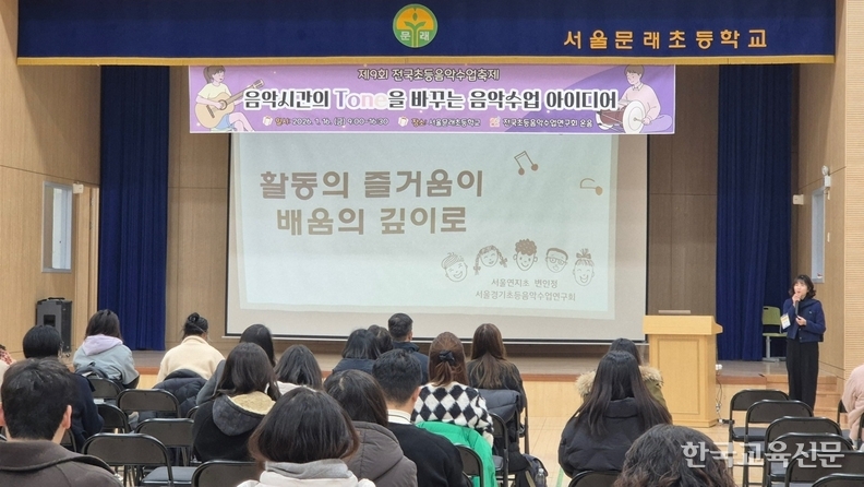 전국 교사 150여 명이 참여한 ‘2026 제9회 전국초등음악수업축제(사진)’가 16일 서울 영등포구 서울문래초(교장 김유상)에서 열렸다. 전국초등음악수업연구회 ‘온음(회장 문미애)’이 주최한 이번 행사는 단일 교과인 음악을 주제로 하루 동안 운영되는 전국 단위 연수로, 올해로 9회를 맞았다.