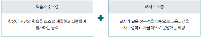 이처럼 ‘함께 만들어가는 교육과정’의 목표는 학습자 주도성과 교사 주도성을 높이는 데 있다.2 하지만 이것이 교사들이 개별적으로 자신의 교육철학만 앞세우거나, 자의적으로 교육내용을 선정해 실천하라는 의미는 아니다. ‘함께 만들어가는 교육과정’은 국가·지역·학교교육과정이라는 견고한 기반 위에 학생과 교사, 그리고 교사 간 공동의 교육철학을 담아내는 실천 중심의 교육과정이라는 점을 강조하고 싶다.