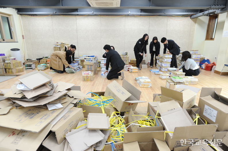 3월 개학을 앞두고 각급학교 교사들이 분주한 시간을 보내고 있다. 23일 오후 경기 삼일공업고에서는 교사들이 신학기에 사용될 교과서들을 분류하는데 여념이 없었다.