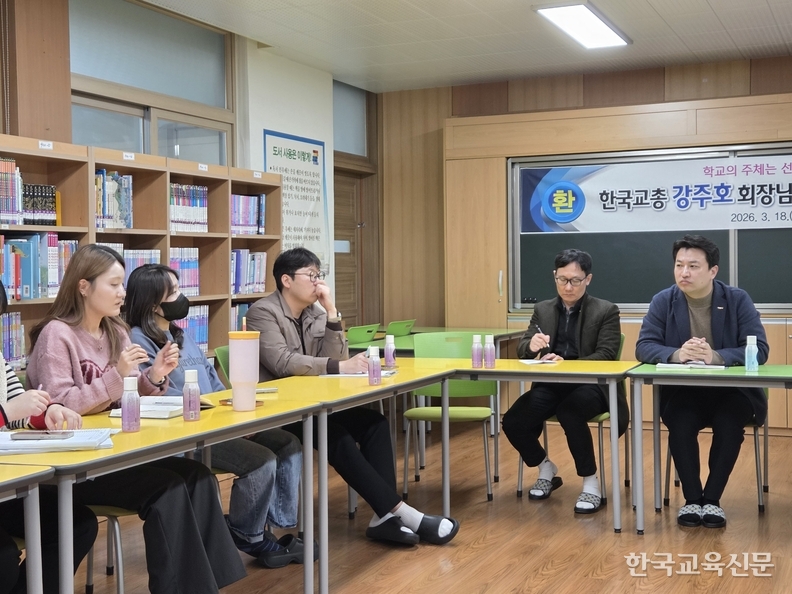 강 회장은 17일 완주 화산중(교장 심웅택), 청완초(교장 김재근) 교원들을 만나고, 김제교육지청원을 방문해 김윤범 교육장과 면담했다. 18일엔 정읍 백완초(교장 김길수)와 익산 이리송학초(교장 한구석)에서 현장교원 간담회를 개최했다.