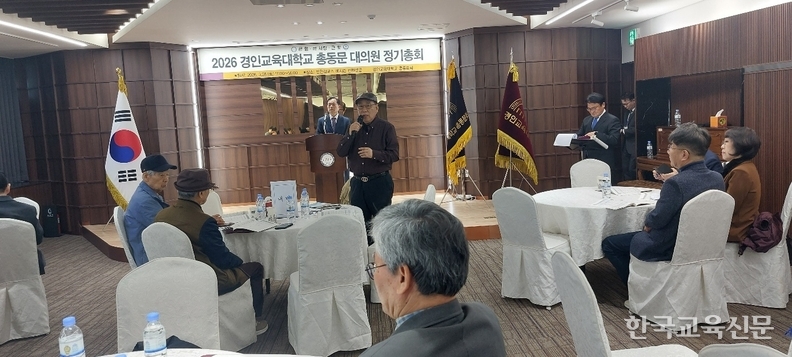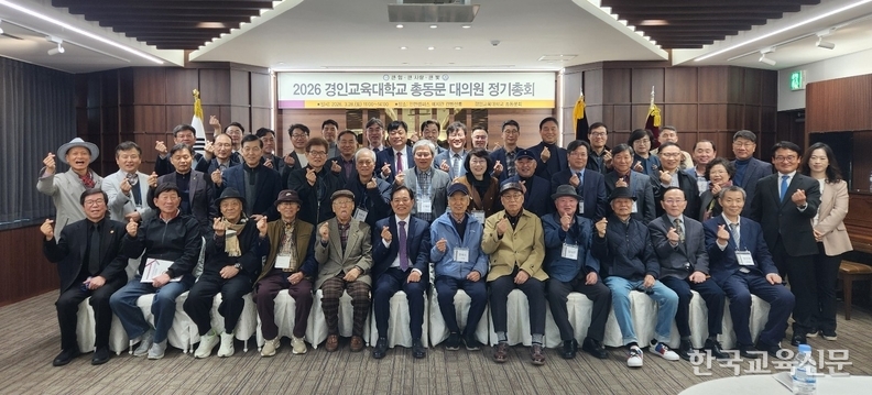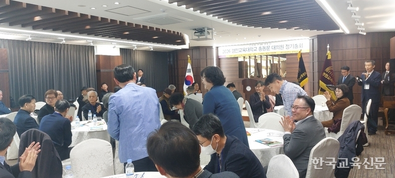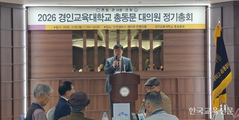 '소통·공감·통합으로 화합하는' 2026 경인교육대학교 총동문회 대의원총회가 28일 오전, 경인교대 인천캠퍼스 예지관 컨벤션룸에서 성황리에 개최됐다. 이날 총회에는 김왕준 총장을 비롯해 자문위원, 역대 회장단, 총동문회 임원 및 (상임)이사, 기별 동창회장, 경기·인천·서울 지역 지회장 등 동문회 대의원과 모교 교수 등 70여 명이 참석해 총동문회의 주요 안건을 심의하고 발전 방향을 논의했다.