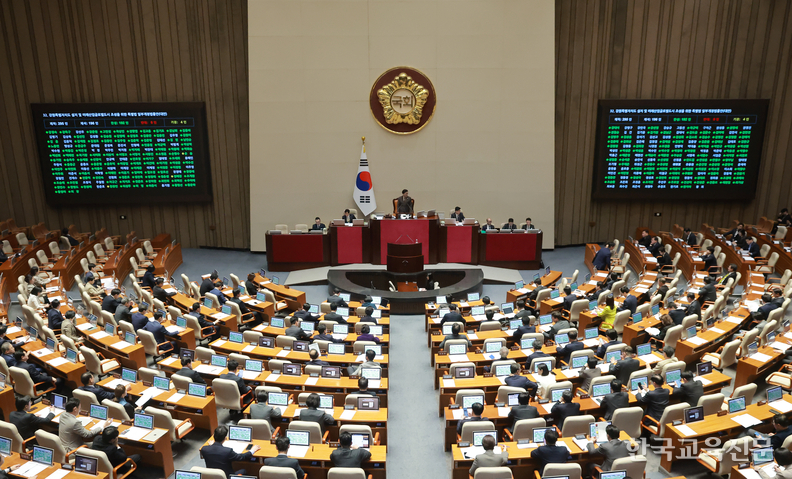 국회는 31일 본회의에서 교육활동 침해 민원 금지 등을 담은 ‘초·중등교육법 개정안을 의결했다.