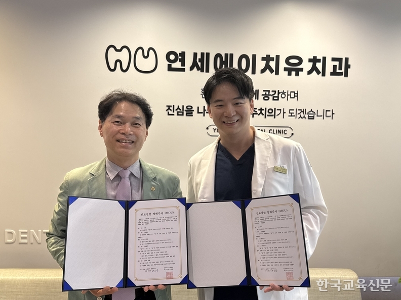충북교총(회장 권오장·사진 왼쪽)은 16일 청주시 흥덕구에 위치한 연세에이치유치과의원(대표원장 김제권)과 교총 회원 및 가족의 건강 증진과 복지 향상을 위한 업무협약(MOU)을 체결했다.