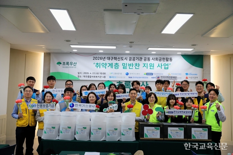이번 활동은 대구사회복지공동모금회, 대구종합사회복지관과 협력해 진행됐으며, 신용보증기금, 한국가스공사, 한국부동산원, 한국장학재단 등 9개 공공기관이 참여했다. 이들 기관은 총 1800만 원의 기부금을 공동 조성해 사업을 추진했다.