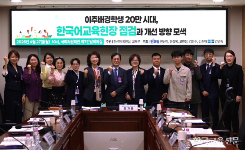 국회 교육위원회 진선미·문정복·고민정·김문수·김준혁(이상 더불어민주당)·강경숙(조국혁신당) 의원는 27일 서울 영등포구 국회의원회관에서 ‘이주배경학생 20만 시대, 한국어교육 현장 점검과 개선 방향 모색’ 간담회를 열고 한국어교육 운영 실태와 정책 과제를 논의했다.