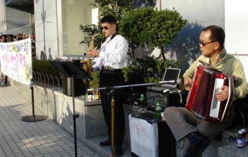 이에 두 교사는 11월 8일, 12일 두 차례에 걸쳐 부산 사하구 신세화 백화점 앞에서 두 시간씩 색소폰과 아코디언으로 듀엣 공연을 펼쳤다. 공연을 통해 얻은 수익금 600여만원은 치료비에 보탰다.