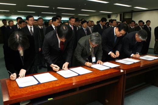 교과부 장·차관을 비롯한 전 직원은 11일 오후 정부중앙청사 19층 대회의실에서 공직기강 확립 방안으로 마련한 ‘클린 MEST인’ 5대 행동수칙을 준수한다는 내용의 청렴서약서에 서명하고, 이를 장관에게 제출했다.