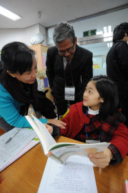 27일 오전 서울 대치초(교장 서철원, 서울교총 회장)를 찾은 포럼 참가자들은 3학년 독서논술 수업을 지켜보면 수업 방법에 대한 많은 궁금증을 나타냈다.(