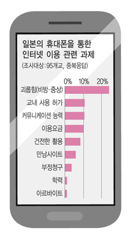 사이버따돌림, 수업방해, 중독 등 휴대폰으로 발생하는 문제들을 예방하기 위해 학교에서는 휴대폰을 수거하는 등 ‘휴대폰과의 전쟁’을 치르고 있다. 이웃나라 일본은 어떨까.