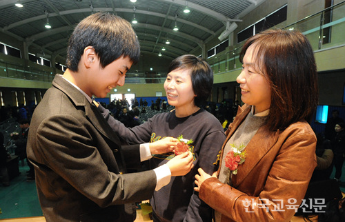 6일 경기 생연중(교장 김진영)은 졸업생이 부모님과 선생님께 카네이션을 달아드리는 훈훈한 졸업식을 진행했다. 생연중은 교육의 주체는 교사와 학생 외 학부모의 역할도 중요함을 되새기는 의미 있는 졸업식을 이어가고 있다.