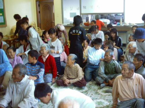 ‘한일랑’ 교장은 원생들에게 건강하고 오래오래 사시라는 덕담과 함께 어린 꼬마들이지만 온갖 정성과 경로의 마음으로 준비하였다며 "미숙하지만 학생들의 볼거리를 보시면서 즐거운 시간이 되셨으면 좋겠다"고 말했다.