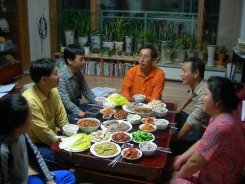 밥상 위, 메뉴를 보니 이웃 이상원 선생님이 김장을 하여 가져온 보쌈이 푸짐합니다. 이은선 선생님이 직접 만든 버섯 부침개도 일미네요. 자, 식사가 끝나면 한밤 중인데 옆으로 밀어 놓은 장학자료 남은 작업은 언제하려나요? 마음이 맞아 즐겁게 일하니 걱정할 필요가 없습니다. 오히려 "빈 방이 하나 남아 있으니 자고 가라"고 그러네요.