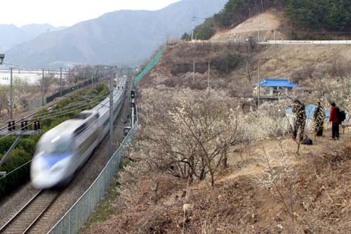 최근 3일 정도 날씨가 영하권으로 떨어지면서 꽃색깔의 화사한 맛이 약간 떨어졌다. 이번주 목요일인 15일에서 주말까지가 사진촬영하기에 가장 좋은 시기가 될 것으로 보인다. 매화를 배경으로 사진을 몇 컷 찍다보면 ‘칙칙폭폭’ 소리를 내며 기차가 지나간다. KTX, 새마을호, 무궁화호, 화물열차가 교대로 지나가며 낭만을 찍고 간다.