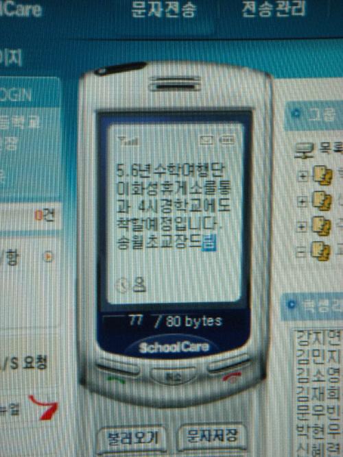 그런 때에 인천송월초등학교에서는 최첨단 문자전송프로그램을 활용 학부모가 궁금해 하는 학교행사나 학생들의 교육에 관련된 사항을 학부모의 휴대폰에 문자메시지로 발송함으로써 학교에서 일어나는 일에 대한 궁금증을 모두 해소시키고 있어 학부모들로부터 좋은 호응을 얻고 있다.