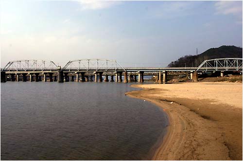 6·25전쟁시 북한군의 도하 방지를 위해 폭파된 다리의 경간은 그 해 10월 총반격 때 침목 등으로 긴급 복구한 이후 계속 인도교로 활용되었다. 하지만 복구 부분이 너무 노후되어 1979년 11월부터는 통행을 전면 차단한다. 한때 철도청에서 다리의 철거를 검토하였으나 호국의 상처를 간직한 다리를 계속 보존하자는 군민들의 의사가 받아들여진다.