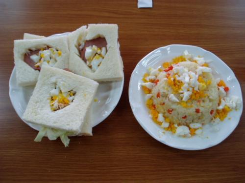 계란 샌드위치, 계란 볶음밥, 계란 튀김 까지 진짜 재미있는 여러 가지 음식이 나왔습니다. 간이 조금 싱거운 것 부터, 제법 짠 것까지 다양했지만 선생님 모두 맛있다고 칭찬하면서 열심히 드셨습니다.