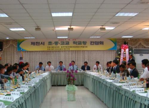 충북의 북부지방을 관할하는 청주지방검찰청제천지청(지청장 : 김영진)이 주최하고 제천교육청과 법무부 범죄예방위원 제천지역협의회가 주관한 제천지역 초중고학교장과의 간담회가 25일 오후 6시 제천시내 명성유유예식장에서 열렸다. 청소년들의 범죄를 사전에 예방하여 올바르게 자라도록 수년전부터 개최되고 있어 정보교환은 물론 청소년선도에 좋은 효과를 거양하고 있다.