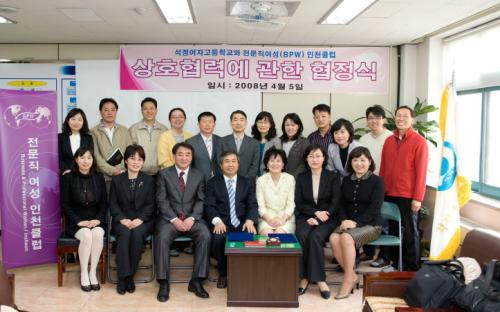 석정여고(교장 신규철)는 학교특색사업의 일환으로 4.5일 전문직 여성 인천클럽(BPW)이정희(한림병원 이사장)과 진로협정을 체결하고 석정여고 학생들의 진학과 진로에 대한 다양한 정보와 여성 지도자들과의 지속적인 멘토활동을 통해 비전을 갖고 적극적인 삶의 자세를 터득하게 된다.