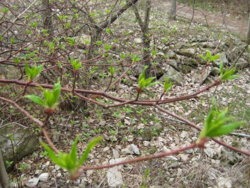 앙상한 나무가지에서 연둣빛 생명이 솟아오르고 있습니다.