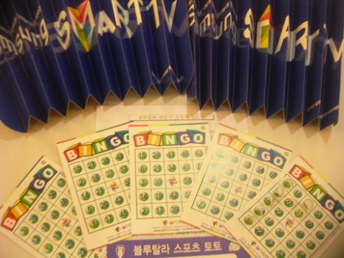 경기 종료 후 라운지로 들어왔다. 스포츠 토토 경기 결과를 맞춘 사람에게 상품을 준다. 또 스코어 맞추기와는 상관 없이 추첨하여 상품을 수여한다. 블루윙즈 선수 2명이 초대되어 기념사진을 찍게 한다. K-리그 트로피를 갖고 기념사진으로 남기게 한다. 이게 다 팬을 만들려는 이벤트다.