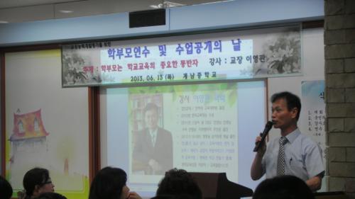 그 학교 담당 부장님께 전화로 주제를 알려주고 며칠 후 원고를 발송하였다. 이제 강의를 준비해야 한다. 어떻게 전개할까? 혼자 일방적 강의는 안 된다. 서두에 초청해 준 교장의 교육열정을 잠시 소개하였다. 몇 년 전 봉사활동 시범학교 유치 및 보고회에서 받은 인상을 이야기 한 것이다. 목표를 정하고 그 목표 달성을 위해 매진하는 모습이 아름다웠다.