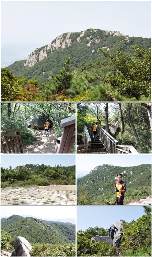 망미봉을 돌아서면 나뭇가지 사이로 보이는 상계봉이 멋지다. 안부로 내려섰다 다시 나무계단을 올라 헬기장을 지나면 암석들이 촘촘히 박힌 산줄기와 상계봉이 한눈에 들어온다.