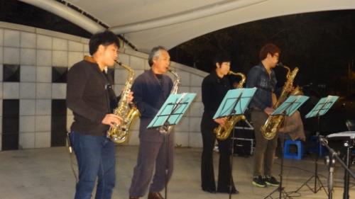 지난 토요일 저녁 수원공단내 오목천공원 야외무대에서 조촐한 음악회가 있었다. 날씨는 쌀쌀했지만 무려 100여명이 모여 무대 출연자와 함께 호흡을 맞추며 손뼉을 치며 음악을 즐겼다. 협성대에서 전 교수에게서 색소폰을 배운 제자들이 출연하여 의미가 깊었다.