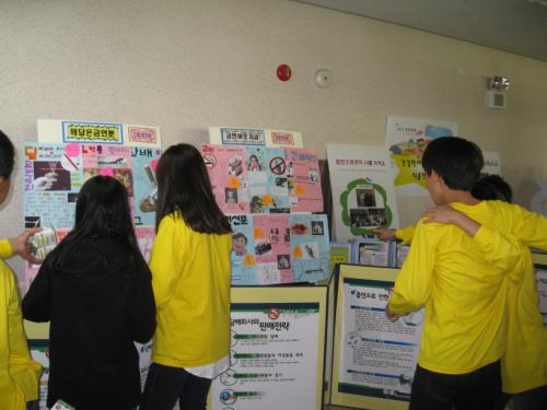 이에 10월 21일부터 24일까지 건강한마당 전시회에 학생들의 예방교육 활동 작품들을 선보였다. 또한 이 기간 학생뿐 아니라 학부모들도 전시회를 감상하며 흡연예방의 교육적 효과가 건강한 가정을 만드는데 일조하도록 하였다.