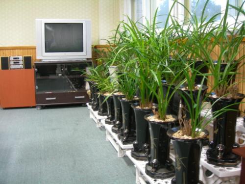 교장 시절, 축하 난으로 받은 수 십 개. 이 당시 축하 난 대신 축하쌀로 받아 서호노인복지회관에 추석을 맞아 어르신들에게 송편을 선물하였다. 그래서 축하 난 숫자가 줄어든 것이다. 교장실에 화분 받침대를 만들어 가꾸었다. 4년간 재직하는 동안 대부분 죽이고 말았다. 가꿀 줄 모르기 때문이었다.