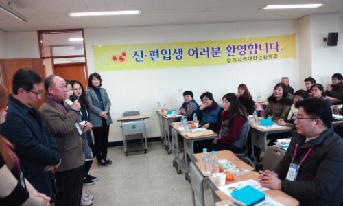 일요일인 어제 오후에 경기지역대학에 도착하니 재학생들이 입구에서 환영 피켓을 들고 신‧편입생을 맞이한다. 주요 임원들은 어깨띠를 메고 신입생들을 환영해 준다. 대학별 오리엔테이션이 아니라 학과별 오리엔테이션이다. 4층에서 과회비와 발전기금을 내고 강의실에 들어섰다.