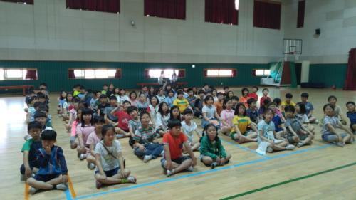 오전 9시부터 강당에서 4학년과 5학년 총 91명을 대상으로 나라사랑 교육을 실시하였다. 마침 오늘이 6월 호국보훈의 달 첫날에 학생들과 만나 6월의 중요성을 이야기 하면서 문답식으로 강의를 시작하였다. 학생들의 듣는 자세가 매우 좋아서 학생들을 칭찬하는 것으로 말문을 열면서, 나라사랑은 먼 곳에 있는 것이 아니라 가까운 내 자신부터 실천하는 것이 중요하다고 강조하였다.