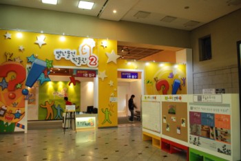 2층 전 구역에는 아이들이 넘어져도 다치지 않도록 푹신한 인조잔디와 매트가 깔려 있으며, 햇살이 잘 드는 통유리벽 바로 옆에 마련돼 있는 휴식공간에는 조약돌 모양의 쿠션과 과학서적이 비치돼 있어 편안한 자세로 여유 있는 휴식을 취할 수 있다.