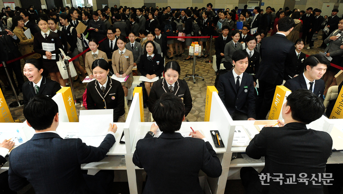 교육부와 고용노동부 등이 공동주최한 ‘2017 대한민국 고졸인재 잡콘서트’가 22일 경기 킨텍스에서 개최됐다. 전국에서 1만 5000여 명의 학생이 모인 이 행사에는 대기업, 금융회사, 공공기관 등 105곳이 참여한 가운데 36개 기관은 현장 면접을 진행해 뜨거운 고졸취업 열기를 보였다.