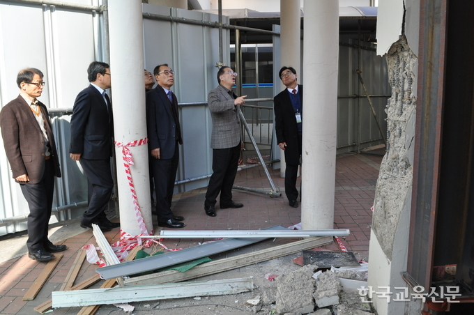 우주환 대동고 교장도 “기숙사 등 일부 증축해놓은 건물이 피해가 크고, 지금도 하루 하루 건물 모습이 달라지는 등 위험요소가 있다”며 “피해상황이나 후속대책 등에 대해 논의를 하면서 지원 요청할 부분이 있으면 하겠다”고 답했다.