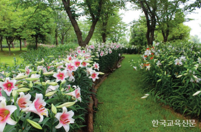 순천만국가정원에는 다양한 꽃들이 많이 피어 있다. 요즘 일본정원 주변에 새롭게 단장한 백합단지에는 백합이 만발하여 관람객의 발길을 붙들어 맨다. 3만 주의 백합은 늘 웃고 있지만 시끄럽지 아니하다. 비를 맞고 있지만 외로워 하지 않는다. 많은 관람객이 찾아주는 것 때문에! 주변의 녹음진 경관과 어우러져 7월 10일경까지 수국과 함께 절정을 이룰 것이라 한다.