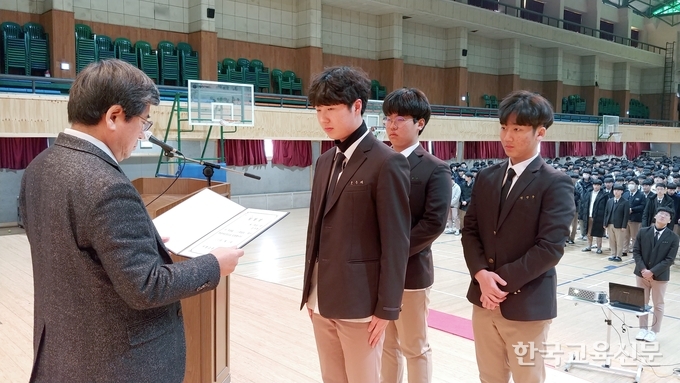 이어 “지도자가 앞장서서 현명하게 잘 선도하고 노력하면 분명히 좋은 결실이 있을 것이라 확신하며 학급 학생들도 반장을 잘 도와서 공부할 수 있는 학급, 정숙한 학급, 편안하고 포근한 학급을 만드는데 최선을 다해달라”고 주문했다. 또한 “노력의 결과는 학교와 학급의 발전에 밑거름이 되어 아름다운 학풍이 창조될 것이며, 우리 모두 힘을 모아 즐겁고 자랑스러운 학교와 학급을 만드는데 함께 노력하자”고 강조했다.
