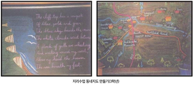 이것은 지식과 앎이 단지 머리에 국한된 것이 아니며, 감정과 의지가 통합된 지식이 학생들에게 능력을 일깨울 수 있다고 생각하기 때문이다. 교육과정의 예술적 구성을 잘 보여주는 것이 교사들이 활용하는 칠판그림이다.